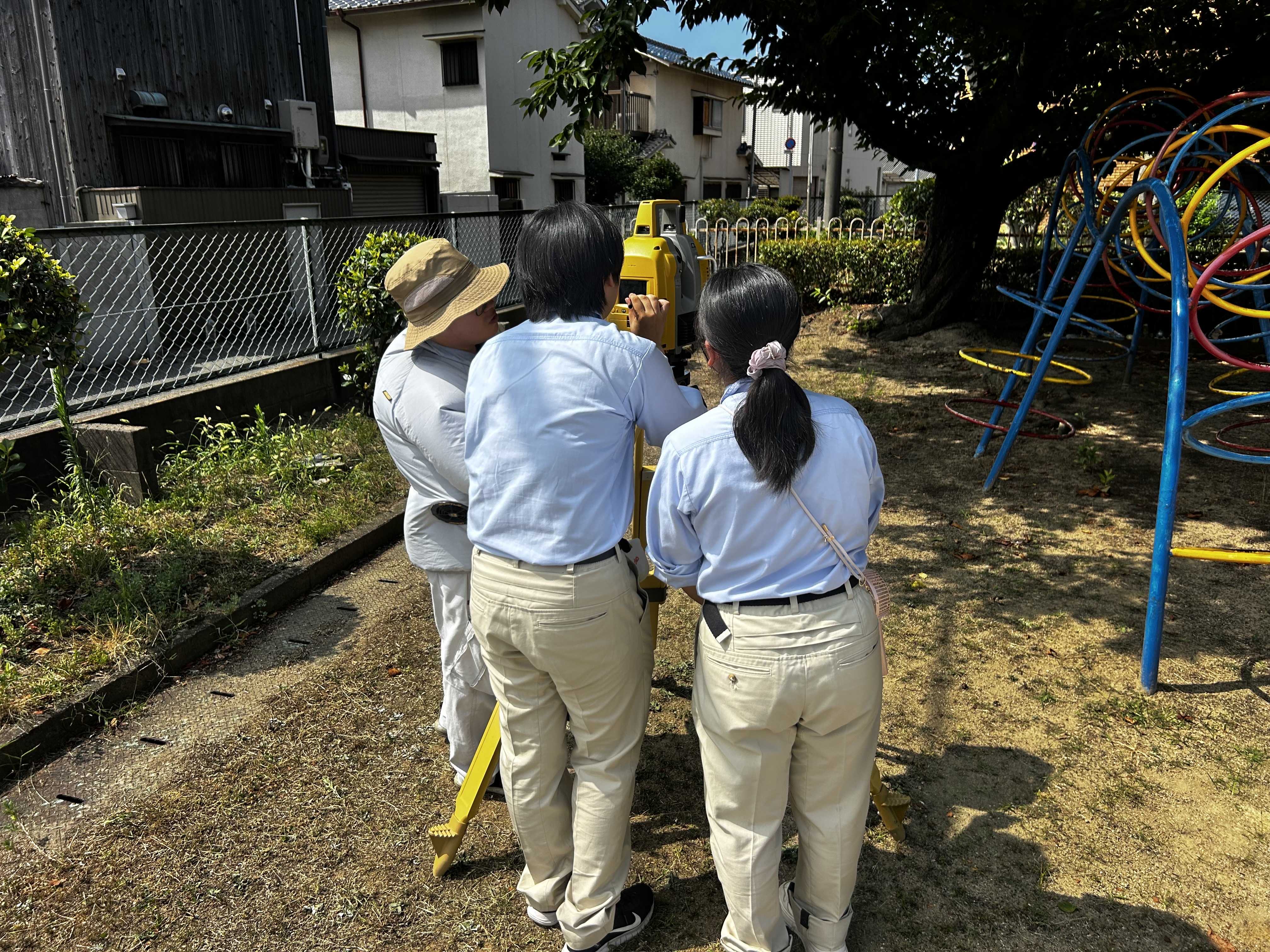 様々な測量機器の使用や専門的な内容で難しかったかと思いますが、測量設計業について少しでも関心を抱いていただければと思います。猛暑が続いた5日間でしたが、生徒の皆さんお疲れさまでした。