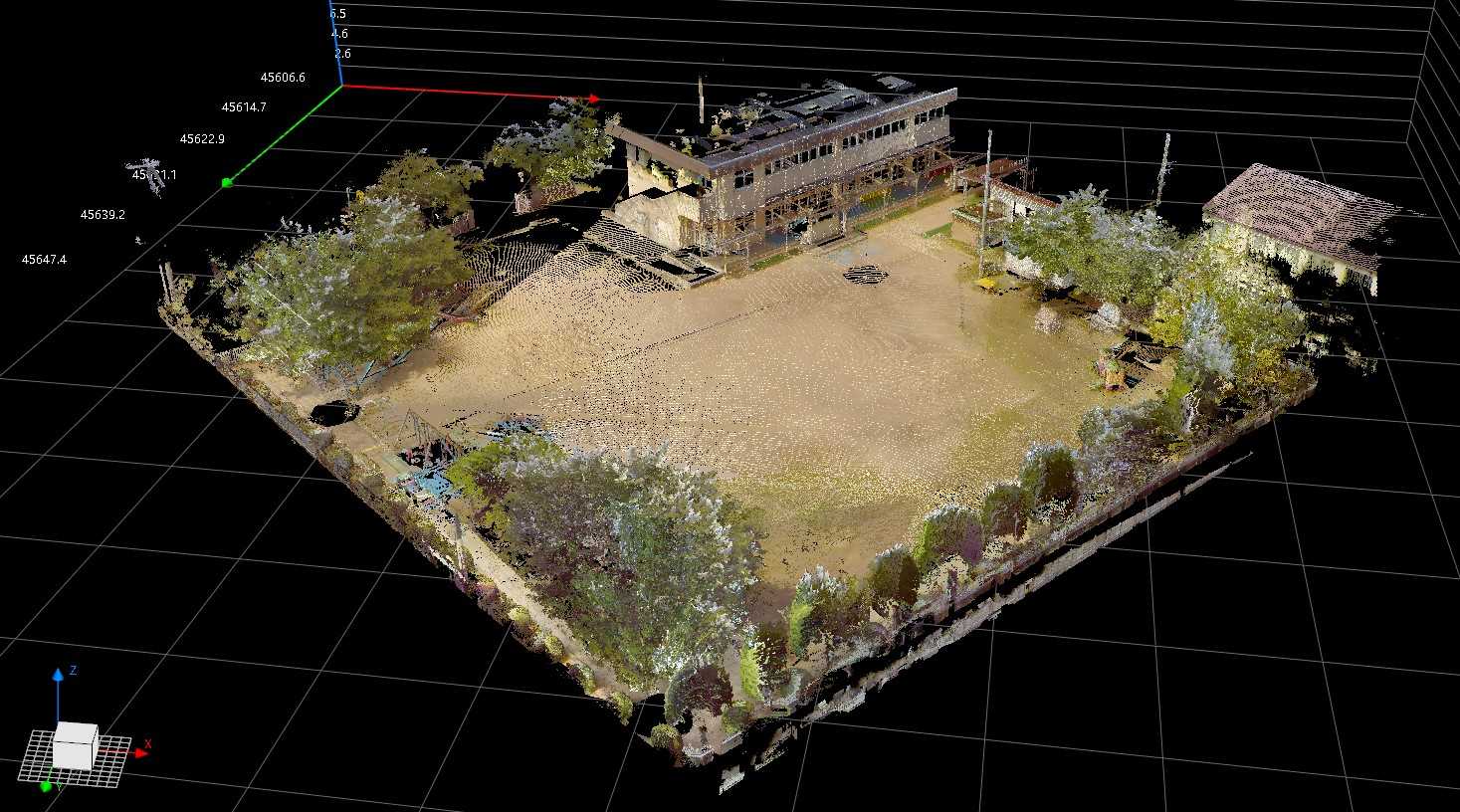 現場作業では、トランシット(TS)を使った復元測量や、地上レーザ測量機(TLS)で測ったデータを基に三次元点群作成までの流れを体験していただきました。また、近年異常気象により川の氾濫等の災害が多発する中、防災関連事業として行っている、流量観測業務の一連の流れも体験していただきました。