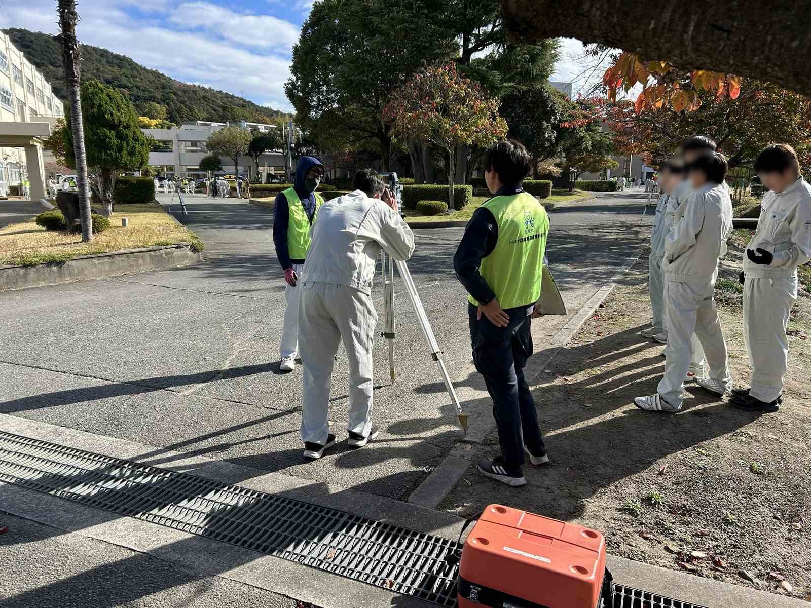 一般社団法人兵庫県測量設計業協会主催の測量体験学習を兵庫県立東播工業高等学校にて行いました。今年も土木科と建築科の1年生を対象に実施させていただきました。